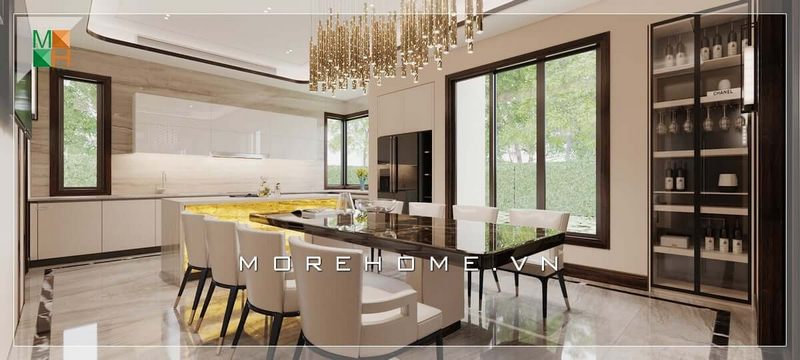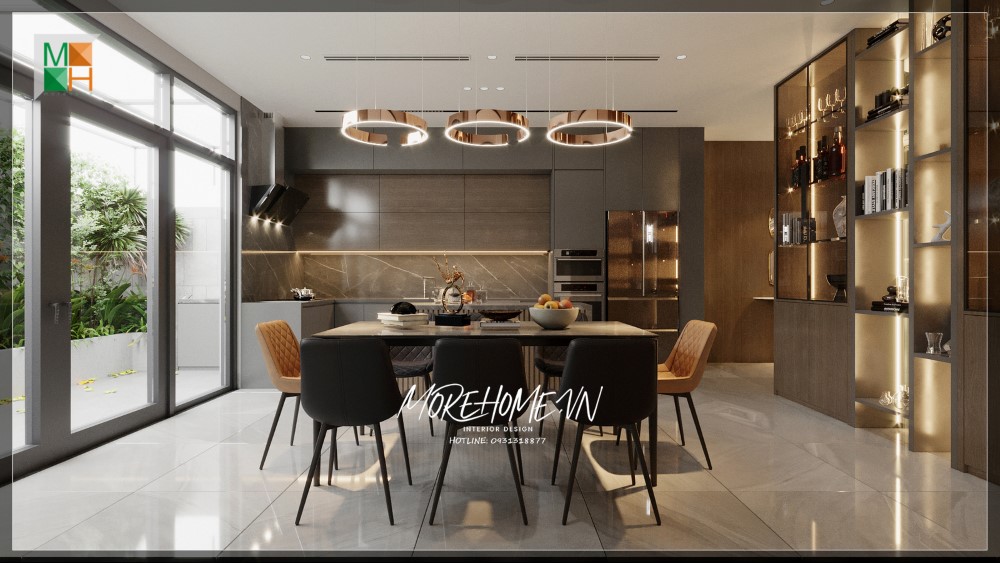 Nội thất phòng bếp hiện đại và thuận tiện được thiết kế để phục vụ nhu cầu của người nội trợ.