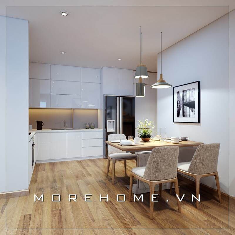 Nội thất phòng bếp đơn giản nhưng hiện đại được thiết kế cho nhà chung cư.