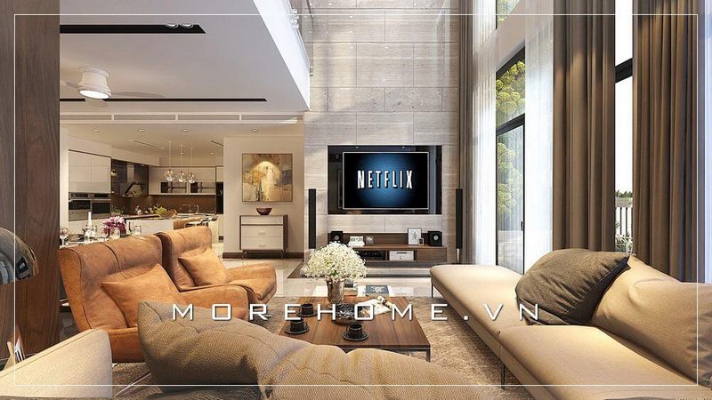 Bộ sofa hiện đại cung cấp một không gian thiết kế nội thất phù hợp với phòng khách biệt thự, giúp khít khoảng trống và gợi mở một không gian gọn gàng, có thể dễ dàng ngăn nắp.